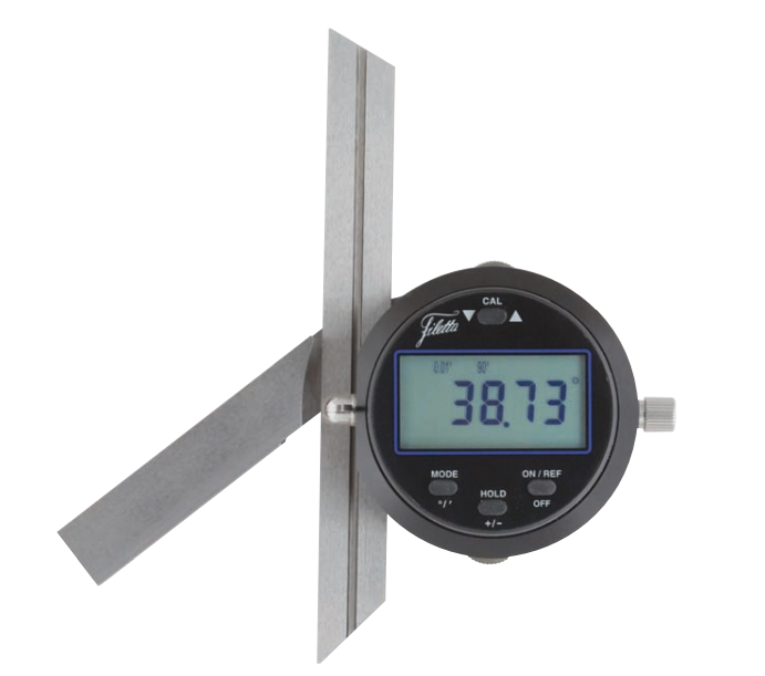This versatile tool is designed for accurate angle measurement with a strong emphasis on ease of operation and flexibility. It offers adjustable measuring ranges that can be switched between 1×360°, 2×180°, and 4×90° modes to suit different applications. Supplied as a complete kit in a robust aluminum case, it includes two blades (150 mm and 300 mm) along with an attachment for measuring small angles. The functional display features a reversible reading function and a fine adjustment wheel, enabling high-precision settings and convenient operation.